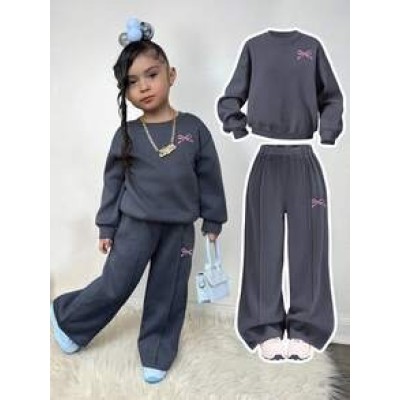 Toddler Letter Print Warm Crew Neck Sweatshirt And Cargo Pants Set